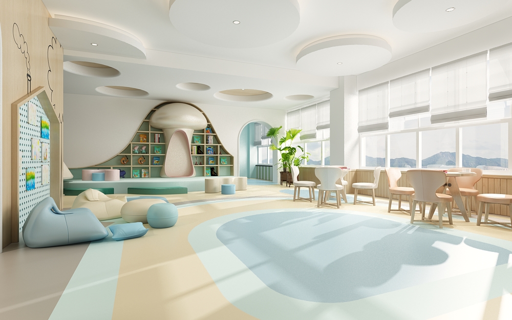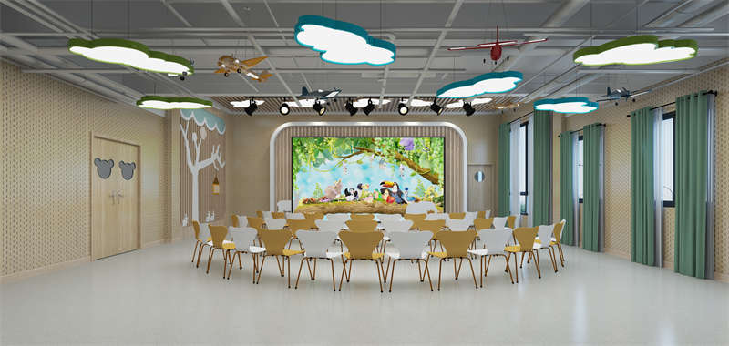 幼兒園的活動教室是孩子們進行各種室內活動的場所,是一個小型的多功能活動空間,我們在設計幼兒園活動教室的時候要秉持著讓孩子們更喜歡待在幼兒園這個目的。孩子們在活動室可以進行上課,桌面游戲,聽故事講故事,唱歌,跳舞,開展興趣小組活動,扮家家,吃午飯吃點心等等。